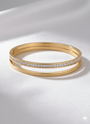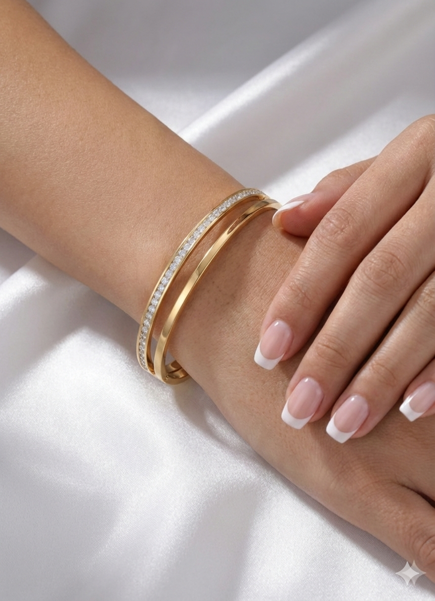 İnce taş hattı ve çift formlu yapısıyla bilekte zarif bir ışıltı bırakır.
