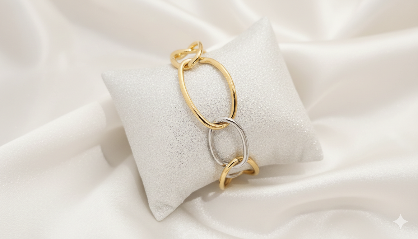 İki tonlu uzun halka formuyla akıcı, modern ve dikkat çekici bir zarafet sunar.