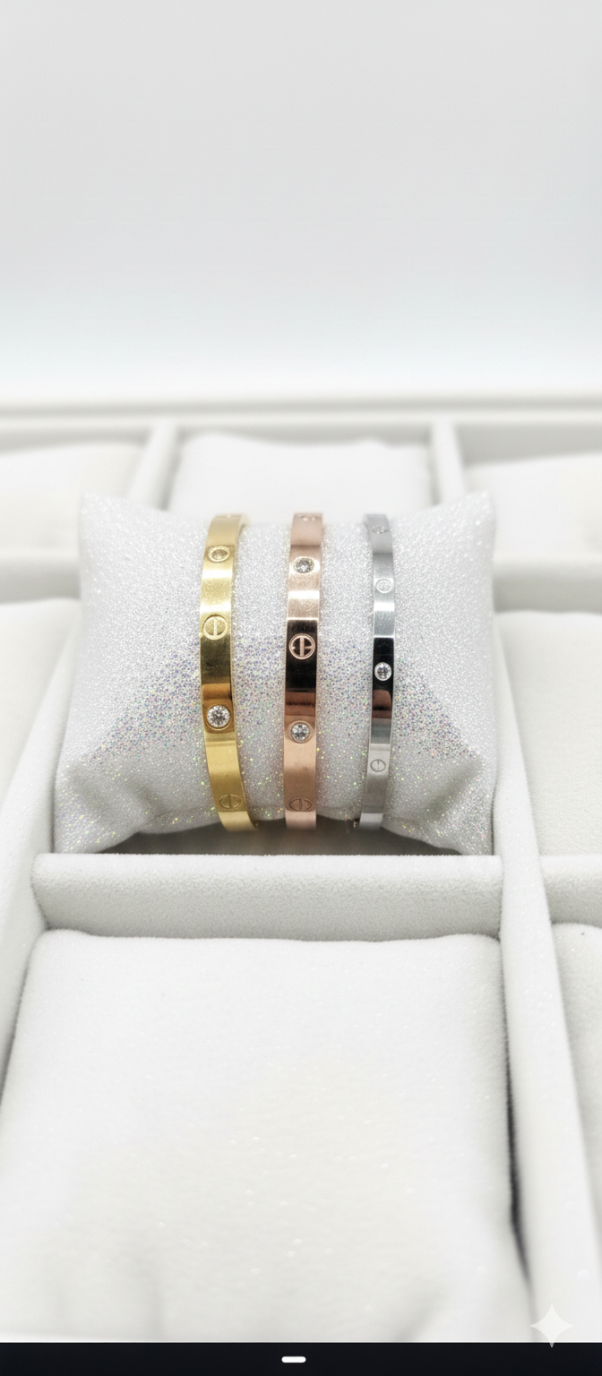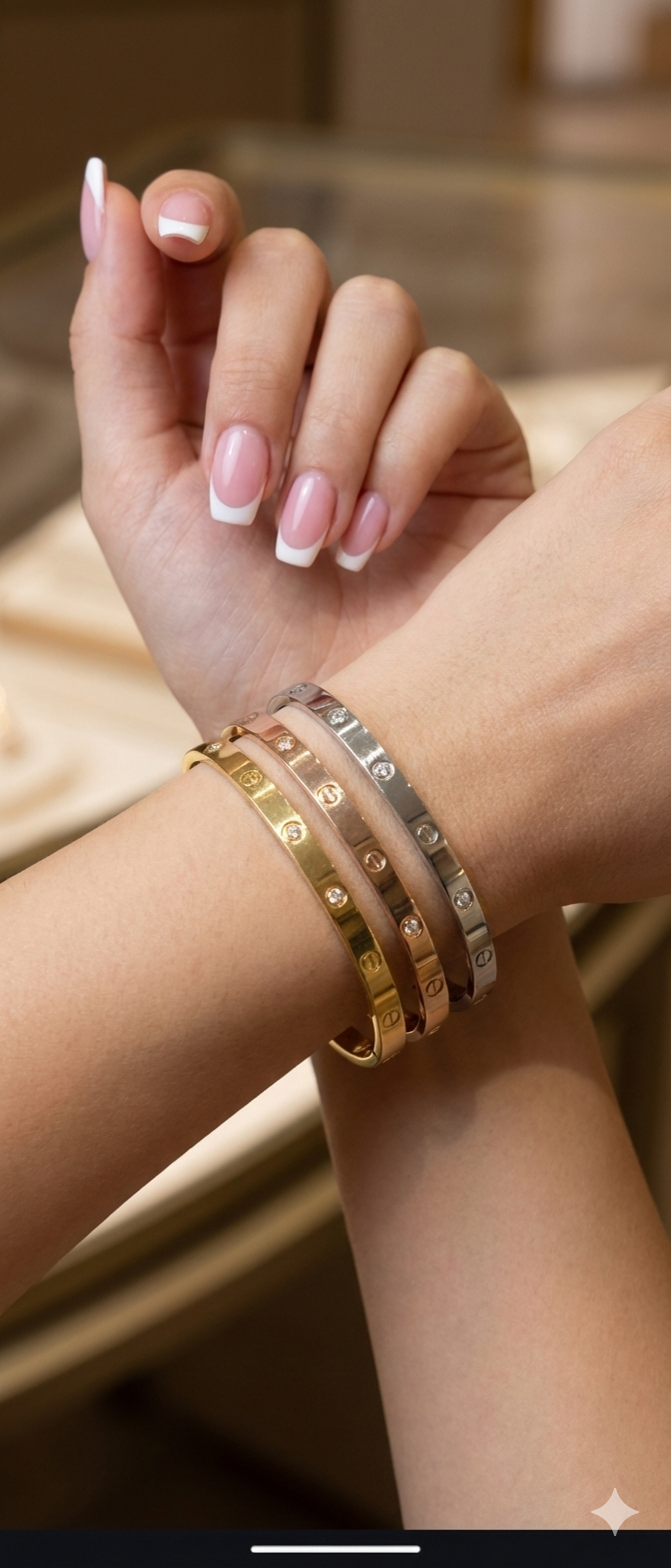 Minimal vidalı formu ve taş detaylarıyla zamansız bir şıklığı modern bir çizgide sunar.