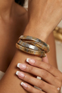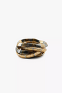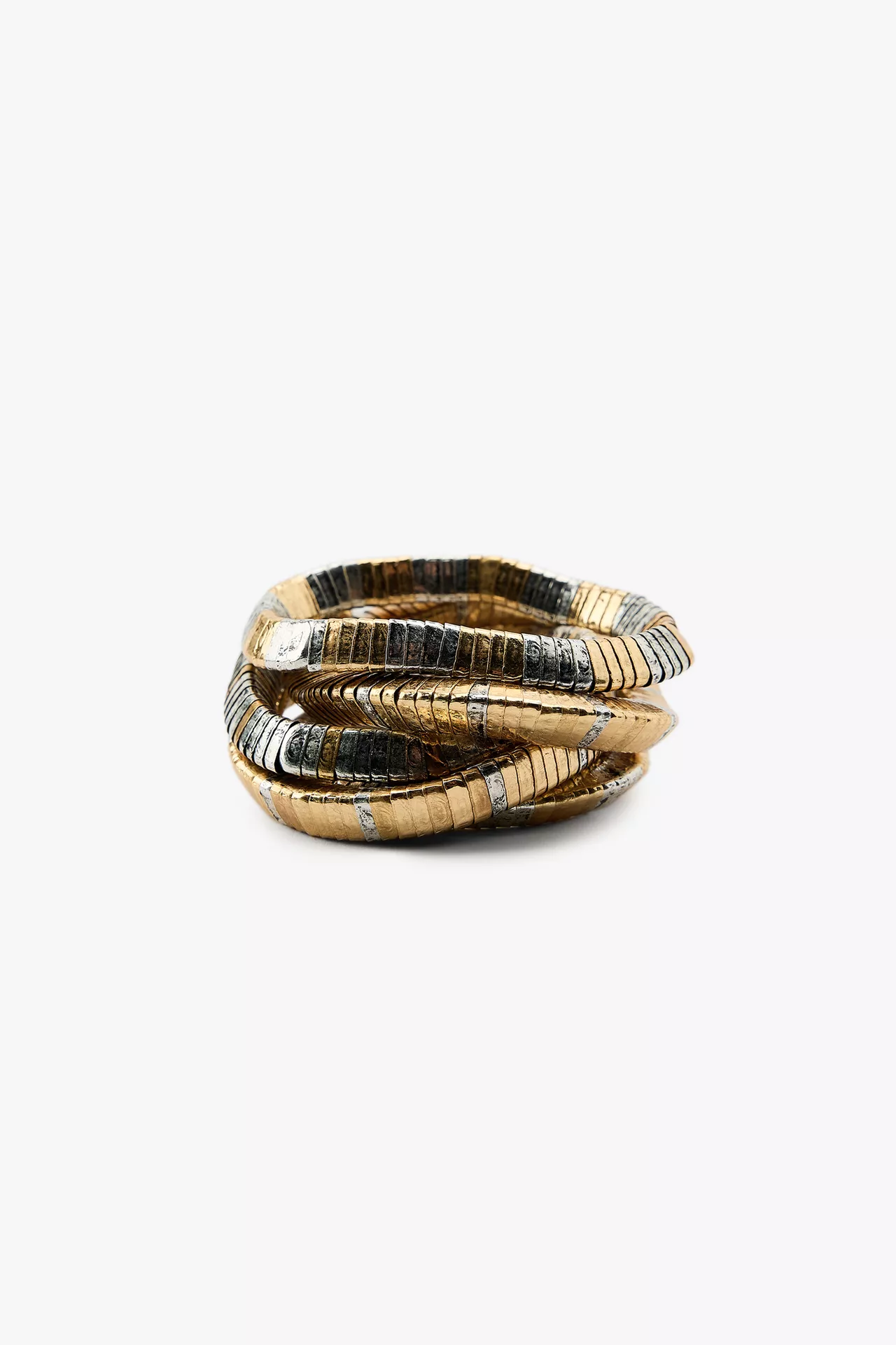 Altın ve gümüş tonlu katmanlı formuyla güçlü ve modern bir ifade sunar.